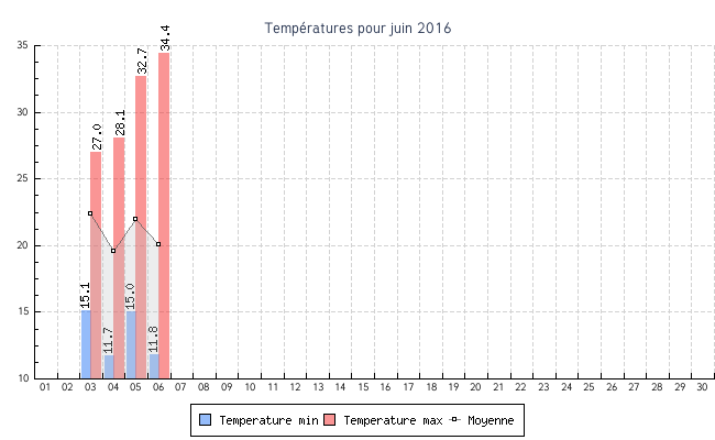 | 06 | 11.8 °C | 34.4 °C | 20.1 °C | 1.6 km/h (12.6 km/h) | ENE |