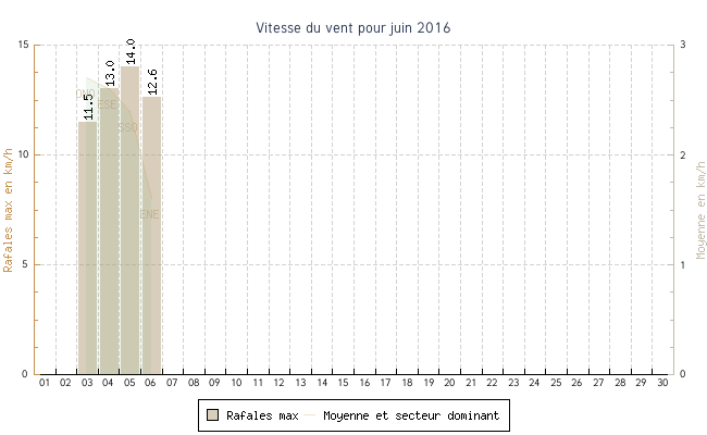 | min | max | moy | Vitesse (rafales) | Secteur | ||